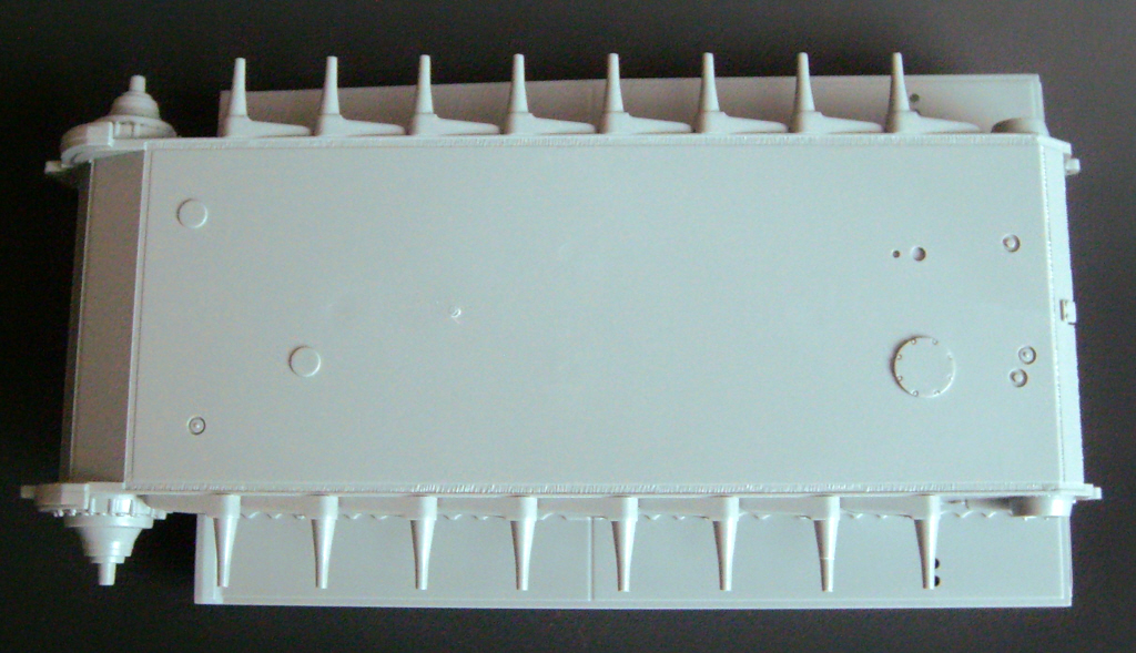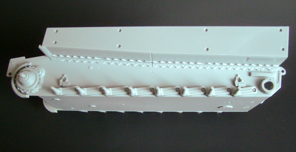 The kit has continuous vinyl DS main tracks. The tools are included molded with brackets, the driver's viewfinder is movable, the MG comes perfectly detailed. It contains new domes to every detail characteristic of this version, as well as the transparent periscopes are molded independently.