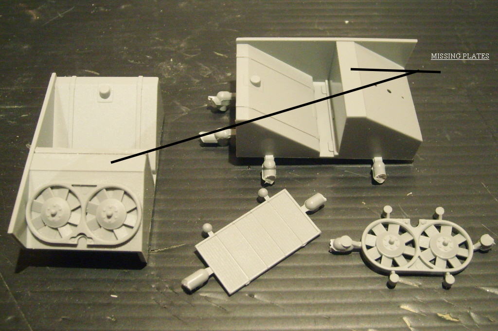 Working the cooling system, it coming with two missing plates. I added them with styrene, really I gave them little attention because will not be shown after of finish the work.