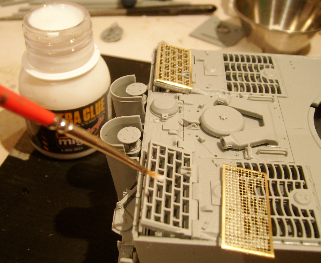 Glued the grilles using "Ultra-Grlue MIG", Is it a strenght acrylic adhesive specially designed for photoetched and clear parts, can be apply with brush, odorless.