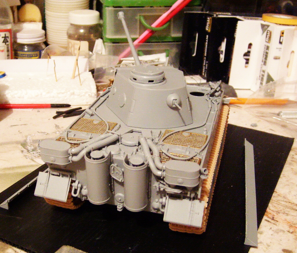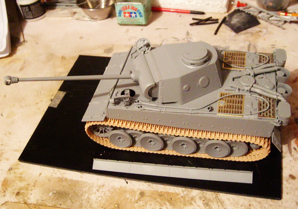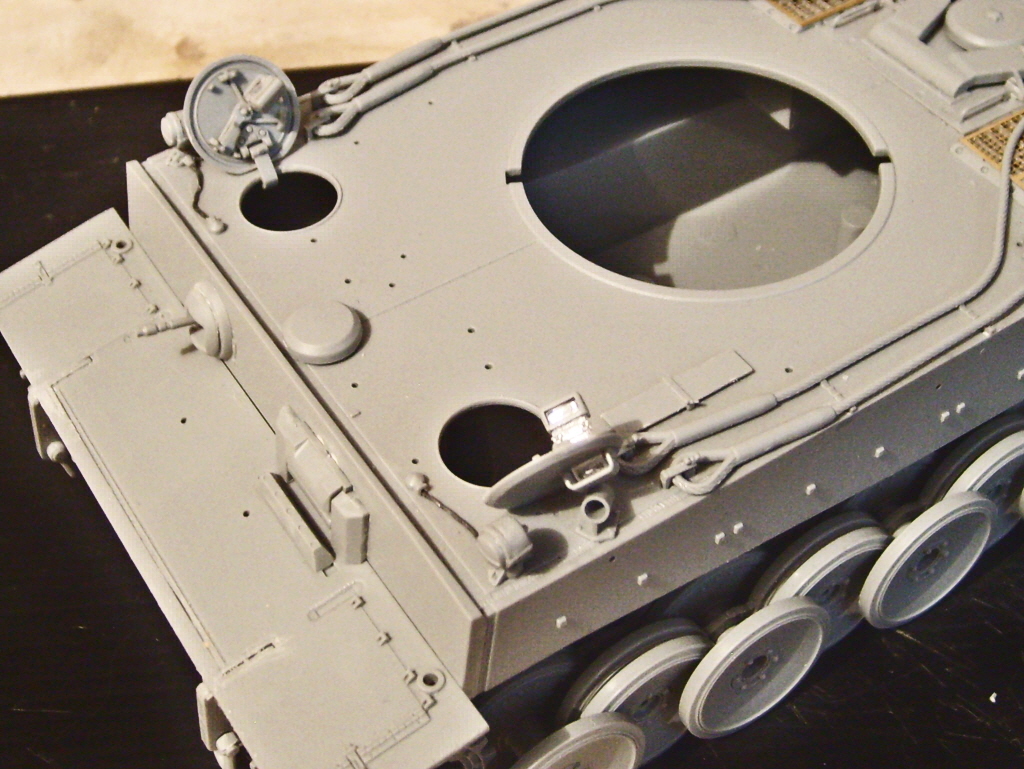 Finished the construction, after of paint I will add the tools. For me is rare see one tiger with a this turret, but looks very nice!