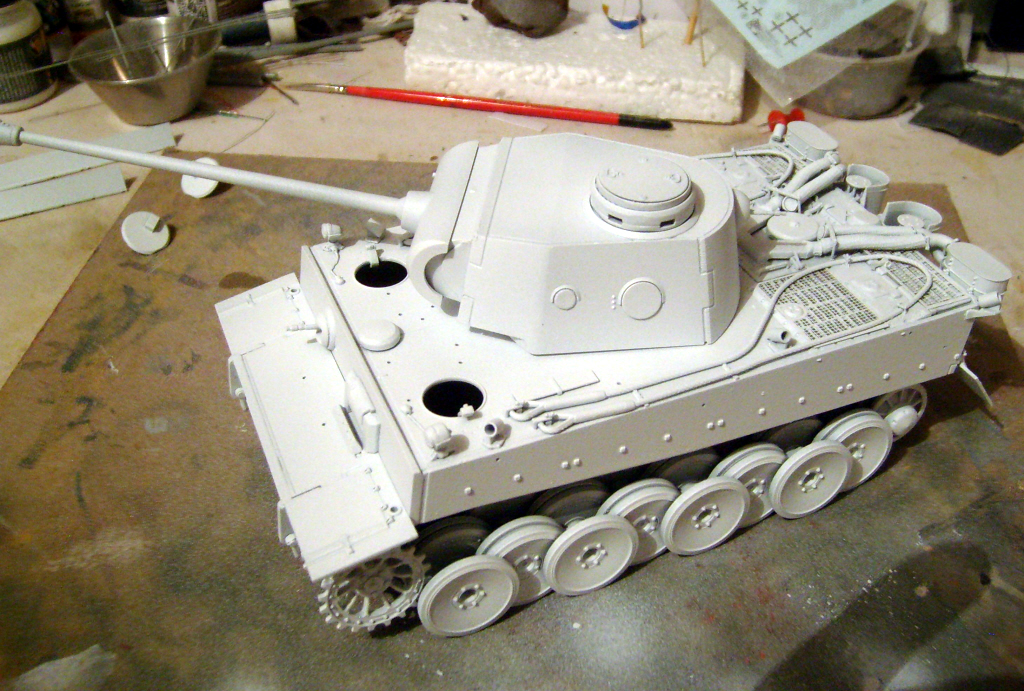 Before to start the painting, I airbushed it with Vallejo/white Surfae Primer. For tracks, side tow cable and tools I will apply Gunze/Mr. Metal Primer with brush.