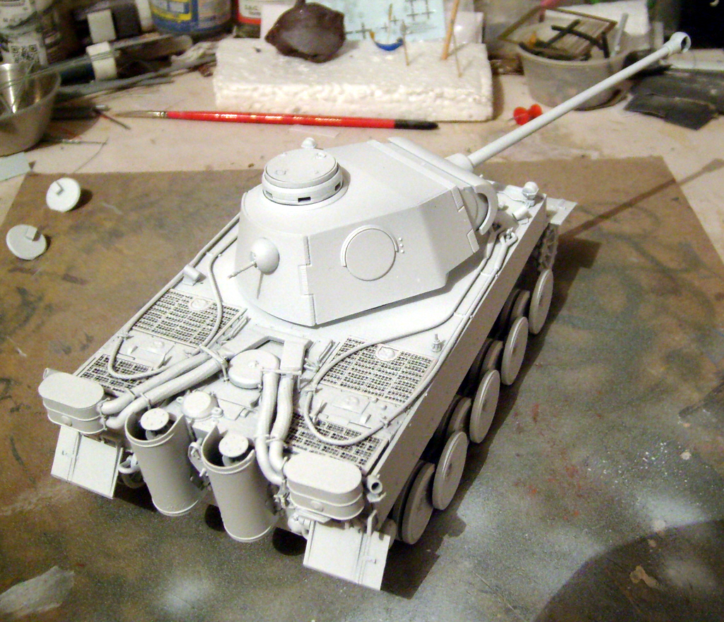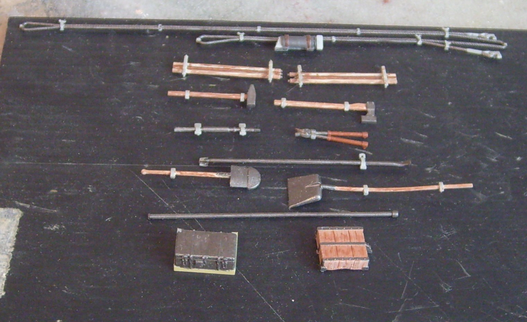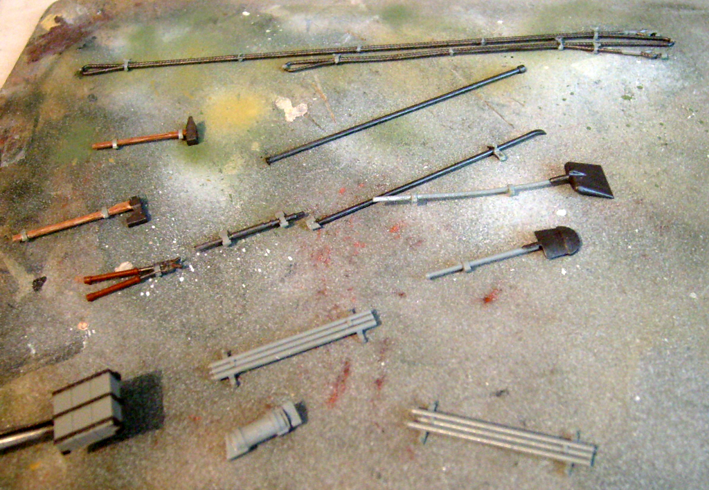 Now I am continuining the painting of the tools, after of this I will paint the tow cables over the tank and another little details.