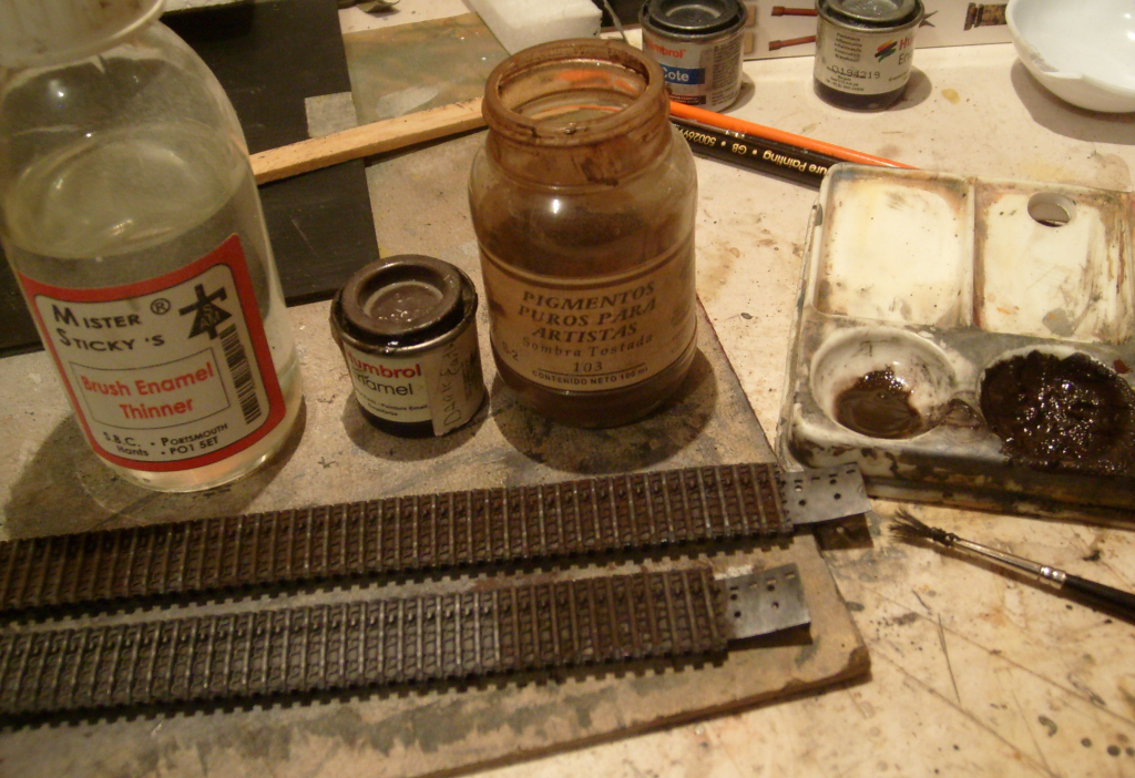 Last phase of tracks: Humbrol #56, Matt Alluminium-Metallic on surface.